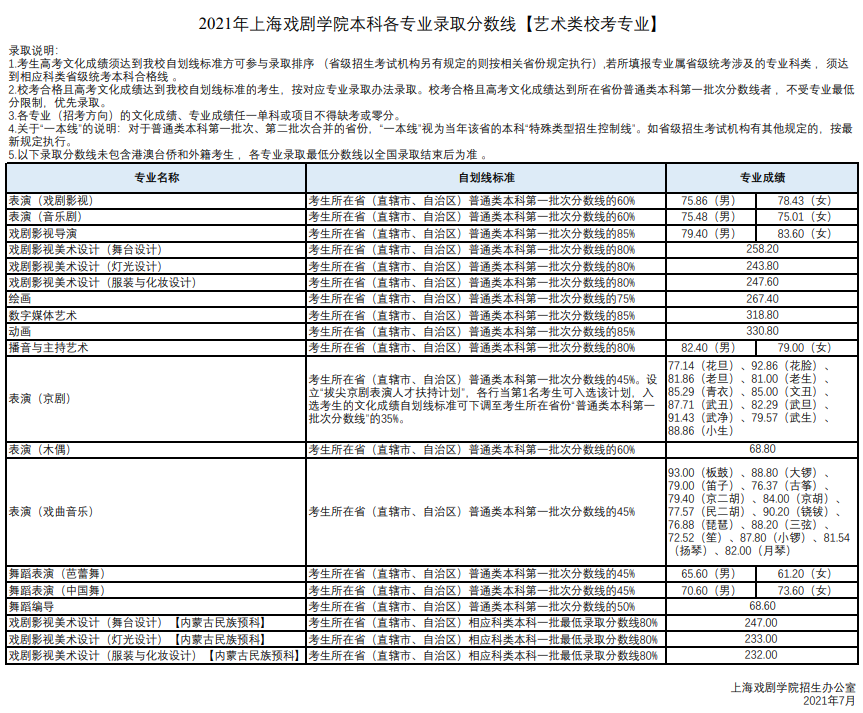2023年高考多少分能上上海戲劇學院?附各省錄取分數線