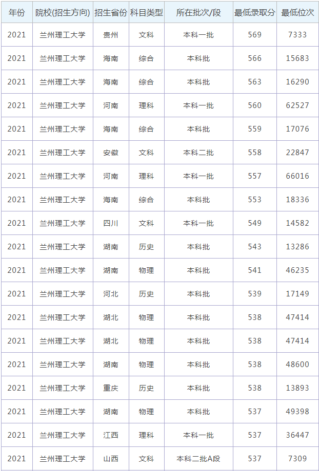 想要報考蘭州理工大學的同學,都比較關注蘭州理工大學今年的錄取分數線,那么,高考多少分可以上蘭州理工大學呢?蘭州理工大學歷年最低錄取分數線是多少?下面為大家整理了蘭州理工大學錄取分數線,希望對大家有所幫助,僅供參考。![]() 蘭州理工大學錄取分數線 ![]() ![]() 蘭州理工大學是公辦還是民辦大學? 根據全國高等學校信息可知,蘭州理工大學是公辦大學。通常來說,公辦大學學費便宜,民辦大學學費較貴。 ![]() 蘭州理工大學簡介 蘭州理工大學(Lanzhou University of Technology)簡稱''蘭理工'',坐落于甘肅省會蘭州,是中華人民共和國教育部、國家國防科技工業局與甘肅省人民政府共建高校,國家“中西部高校基礎能力建設工程”重點建設大學,教育部“卓越工程師教育培養計劃”、“新工科研究與實踐項目”及“國家大學生創新性實驗計劃”入選高校,中國政府獎學金來華留學生接收院校,全國畢業生就業典型經驗高校,全國首批深化創新創業教育改革示范高校,中國人民解放軍后備軍官選拔培養基地,CDIO工程教育聯盟成員單位,設有研究生院和國家大學科技園,東南大學對口支援高校。 學校前身是1919年的甘肅省立工藝學校;1958年,合并組建蘭州工學院、甘肅交通大學定名為甘肅工業大學;1965年,學校劃歸第一機械工業部,將東北重型機械學院和北京機械學院的水力機械、化工機械、石油礦場機械和焊接工藝及設備專業全部遷入,并從湖南大學、合肥工業大學抽調一批教師來校工作;1998年,轉制為“中央與地方共建,以地方管理為主”的院校;2003年,正式更名為蘭州理工大學。 通過對蘭州理工大學錄取分數線的了解,大家大概知道了高考多少分可以上蘭州理工大學,以上數據源于網絡,僅供參考,大家如果想要了解其他大學錄取分數線、大學簡介、大學排行榜、專業選擇等內容,請點擊訪問:大學欄目。 推薦閱讀: 新疆大學錄取分數線 西藏大學錄取分數線 喀什大學錄取分數線 石河子大學錄取分數線 新疆農業大學錄取分數線 高考多少分可以上塔里木大學 新疆師范大學錄取分數線 高考多少分可以上新疆醫科大學? 西藏民族大學錄取分數線 |