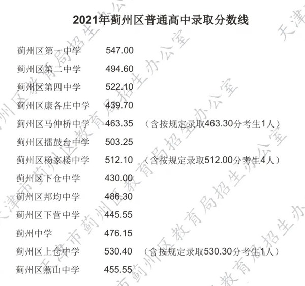 中考過后,大家都希望早點公布2022年天津中考錄取分數線,中考分數線決定著孩子上哪所高中,那么,2022年天津中考錄取分數線是多少?下面就為大家整理了2022年天津中考錄取分數線一覽表,僅供參考。想要獲取更多信息,請點擊下方查詢入口。![]() 2022年天津中考錄取分數線 2022年我市中考成績正式公布。今年中考是我市實施高中階段教育學校考試招生制度改革以來的首次初中學業水平考試。考生升學總成績滿分為800分。其中,學業水平考試筆試成績分值為760分,體育考試平時成績分值為18分,體育考試統一測試成績分值為22分。今年學業水平考試全市平均分為566.95分。 天津2021年中考分數線 天津市中考總分值為590分,其中學業考試成績分值為560分,體育考試平時成績分值為18分,體育考試統一測試成績分值為12分。2021年學業考試全市平均分為419.08分。 》》》2021天津市各區高中錄取分數線 (一)藝術類高中: