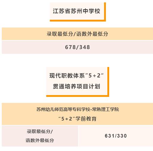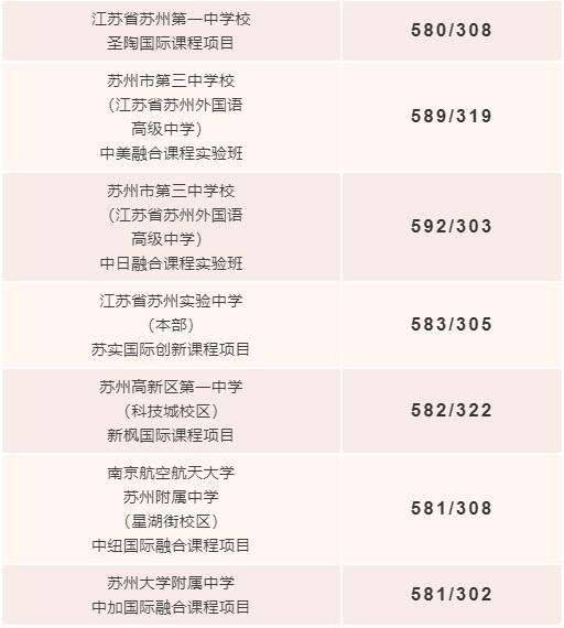 相信有不少考生都想盡早知道2023年蘇州市中考錄取分數線是多少,為了讓考生能第一時間獲取到2023年蘇州市中考錄取分數線的相關內容,特整理本文,希望可以幫助到大家,數據源于網絡,僅供參考。![]() 2023年蘇州市中考錄取分數線 鑒于目前還不清楚2023年蘇州市中考錄取分數線是多少,我們?yōu)榇蠹艺沓隽?022年蘇州中考錄取分數線,等到官方公布后,我們會將2023年蘇州市中考錄取分數線相關內容更新到這里,為大家提供參考。 2022年蘇州中考分數線是多少? 江蘇蘇州太倉市各類高級中等學校錄取分數線 現代職教“5+2”“3+4”本科項目 1.蘇州建設交通高等職業(yè)技術學校-蘇州城市學院“5+2”城市軌道車輛應用技術投檔分數線為553分、且文化總分需在503分及以上且語數外在305分及以上。 2.蘇州建設交通高等職業(yè)技術學校-蘇州城市學院“5+2”環(huán)境藝術設計投檔分數線為554分、且文化總分需在504分及以上且語數外在297分及以上。 3.蘇州旅游與財經高等職業(yè)技術學校-蘇州科技大學“3+4”物流服務與管理投檔分數線為554分、且文化總分需在504分及以上且語數外在300分及以上。 第二批次 1.太倉市華頓外國語學校投檔分數線為540分。 2.江蘇省太倉中等專業(yè)學校綜合高中(職教高考)班投檔分數線為530分。 蘇州市姑蘇區(qū)、工業(yè)園區(qū)、高新區(qū)普通高中錄取分數線 根據2022年蘇州市姑蘇區(qū)、工業(yè)園區(qū)、高新區(qū)普通高中招生計劃及普通高中自主招生最低控制分數線劃線規(guī)則,自主招生最終控制線為 598分 凡自主招生綜合評價合格,中考成績達到姑蘇區(qū)、工業(yè)園區(qū)、高新區(qū)普通高中自主招生控制線的考生,自主招生學校將按公示名單先后順序,采用綜合排名優(yōu)先、考生自主選擇、按照計劃進行錄取。 被蘇州中學“匡亞明”實驗班預錄取的考生應于6月29日12:00~6月30日12:00之間到學校報到。 被其他自主招生學校預錄取的考生(含省蘇州十中“國科大創(chuàng)新實驗班”,省蘇州實驗中學“中科創(chuàng)新實驗班”“南大軟件工程實驗班”,蘇大附中“費孝通班”,省蘇州十中金閶校區(qū)“國科大創(chuàng)新實驗班”,西安交大蘇州附屬中學“納米科學人才實驗班”,星海實驗中學“生命科學課程實驗班”,南航蘇州附屬中學“飛行員課程基地班”),應于7月1日17:00之前,根據相關學校通知到自主招生錄取學校報到,辦理錄取手續(xù)。 凡綜合排名較后而未被錄取的考生以及規(guī)定時間未到相關學校報到的考生,按照本人填報的中考志愿進入志愿錄取流程。 注:姑蘇區(qū)普通高中即市教育局直屬高中。 蘇州外國語學校高中部錄取分數線 創(chuàng)新班全免691分 強基班半免685分 高中國際班660分 蘇州太倉市提前批中考錄取分數線 江蘇省太倉高級中學體育類特長生錄取分數線為中考總分619分,學科類特長生錄取分數線為中考總分619分,科技類特長生錄取分數線為中考總分619分。江蘇省沙溪高級中學科技類特長生錄取分數線為中考總分591分,且綜合分數657.6分及以上;江蘇省沙溪高級中學音樂類特長生錄取分數線為中考總分576分,且專業(yè)測試成績83.5分及以上;江蘇省沙溪高級中學美術類特長生錄取分數線為中考總分563分,且綜合分數631.3分及以上。 蘇州幼兒師范高等專科學校—常熟理工學院“5+2”學前教育錄取分數線為620分,蘇州幼兒師范高等專科學校五年制學前教育錄取分數線為597分。 蘇州昆山市中考錄取分數線 ![]() ![]() 蘇州相城區(qū)中招錄取分數線(一) 01、蘇州中學相城實驗項目 ![]() ![]() 03、師范教育類 ![]() 說明:若考生中考總分等于錄取分數線的總分時,需要比對語數英成績;若考生中考總分高于錄取分數線的總分,則不需要比對語數英成績,直接錄取。 蘇州相城區(qū)中招錄取分數線(二) 01、四星級高中指標生(全區(qū)最低分數控制線601分) ![]() 02、四星級高中統(tǒng)招、望亭中學風華班 ![]() 03、現代職教3+4、5+2試點項目 ![]() 04、望亭中學統(tǒng)招 ![]() 05、相城中等專業(yè)學校職教高考班、綜合高中班統(tǒng)招 ![]() 說明:若考生中考總分等于錄取分數線的總分時,需要比對語數英成績;若考生中考總分高于錄取分數線的總分,則不需要比對語數英成績,直接錄取。 蘇州市各區(qū)高中段各校提前錄取最低分公布