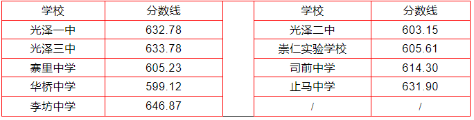 三、浦城二中統招錄取分數線:607.23分 四、浦城三中統招錄取分數線:554.54分 五、仙陽中學統招錄取分數線:494.85分 六、榮華實驗高中統招錄取分數線:426.59分 光澤縣普通高中最低錄取控制分數線一、光澤一中統招錄取分數線:668.80 二、光澤一中定向招生各校錄取分數線